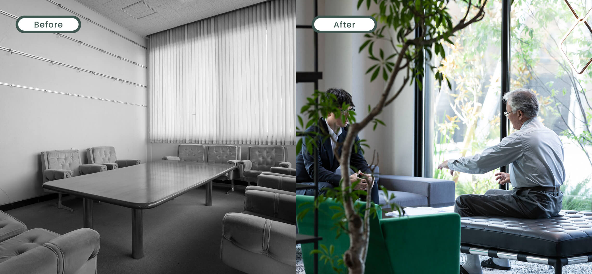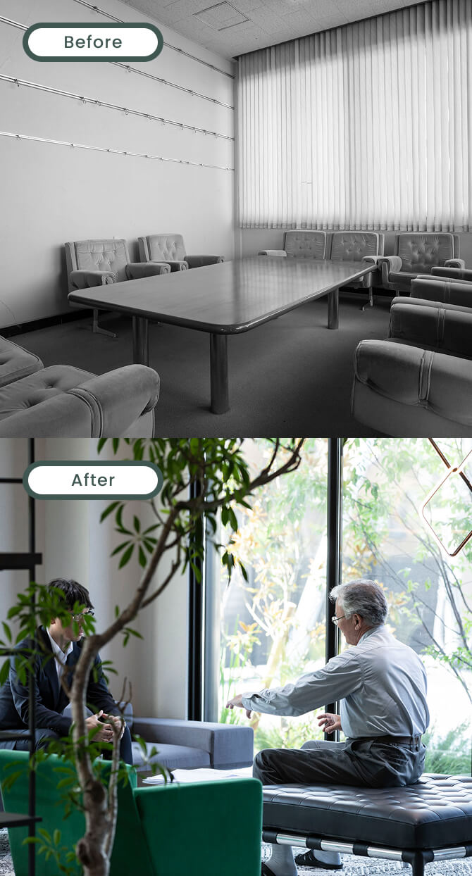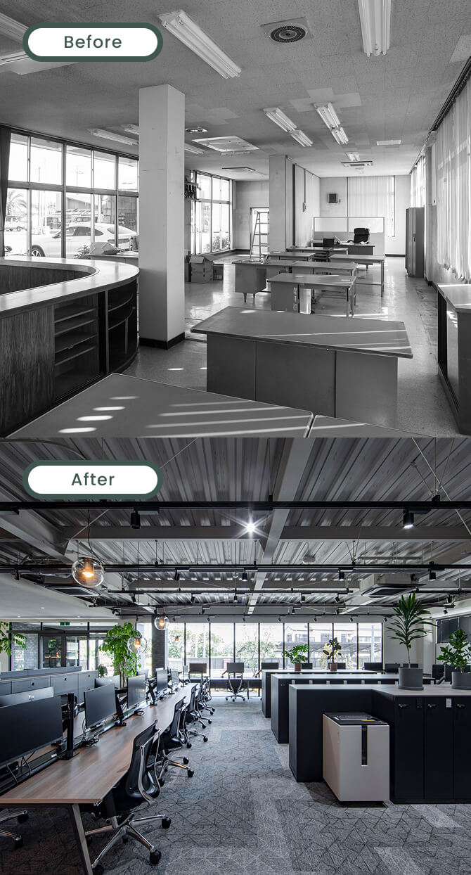 新築と比べてコスト削減になることはもちろん、経営課題に踏み込んだリノベーション提案でビジネスそのものの成長も応援します。