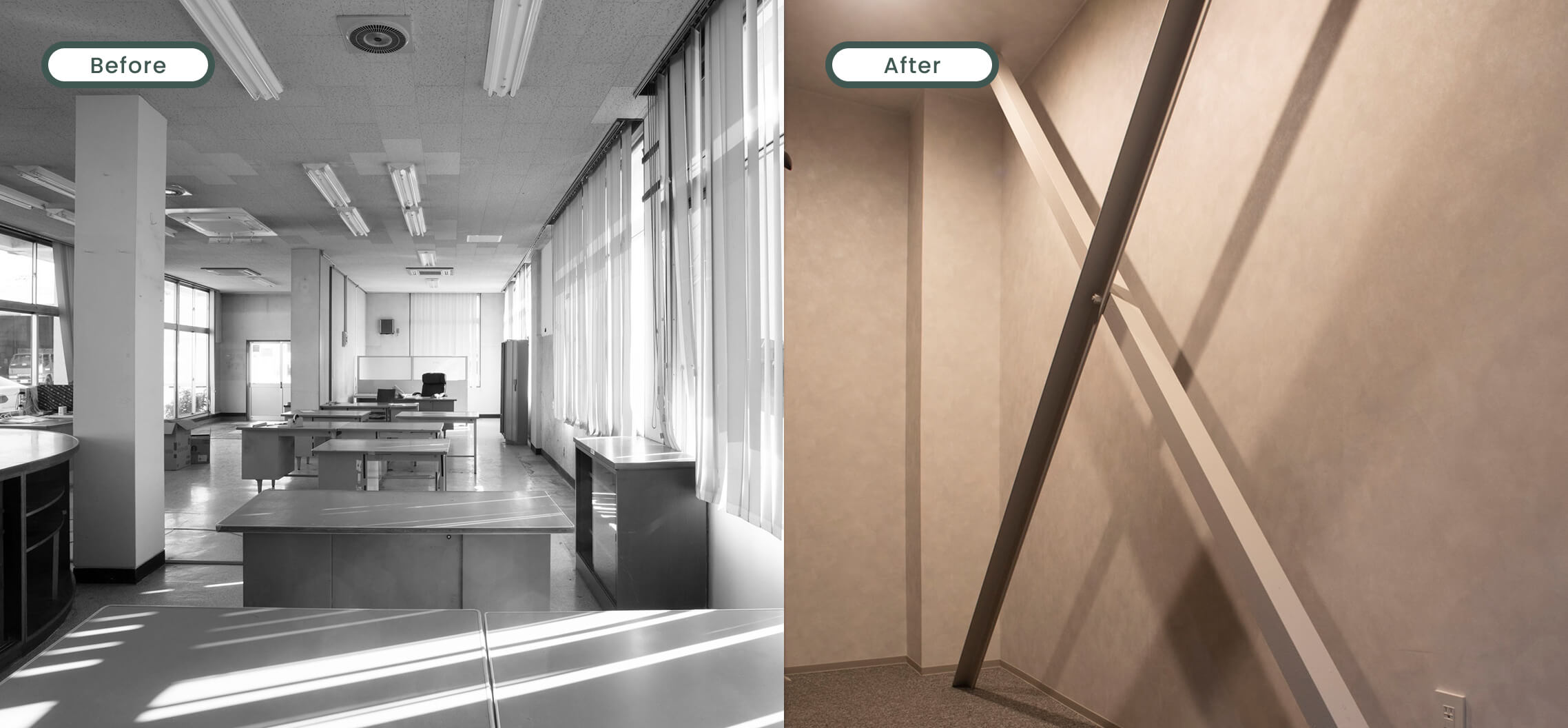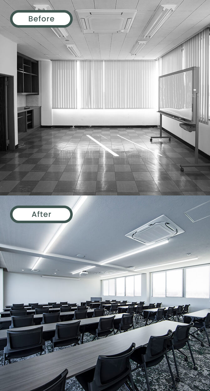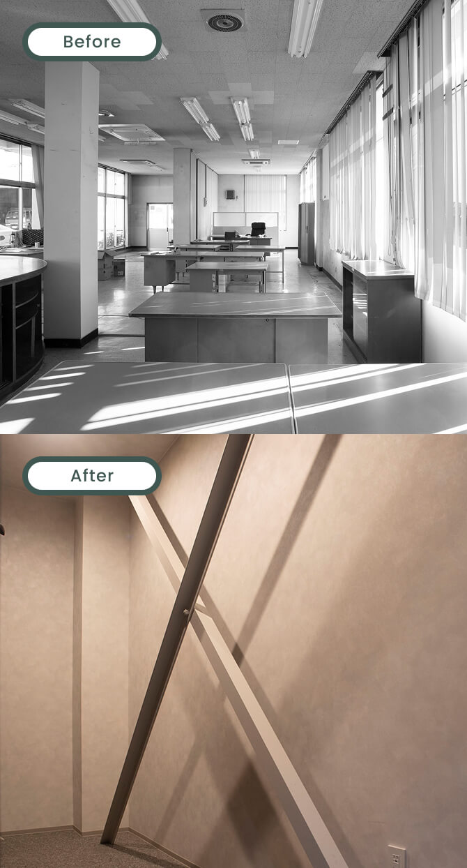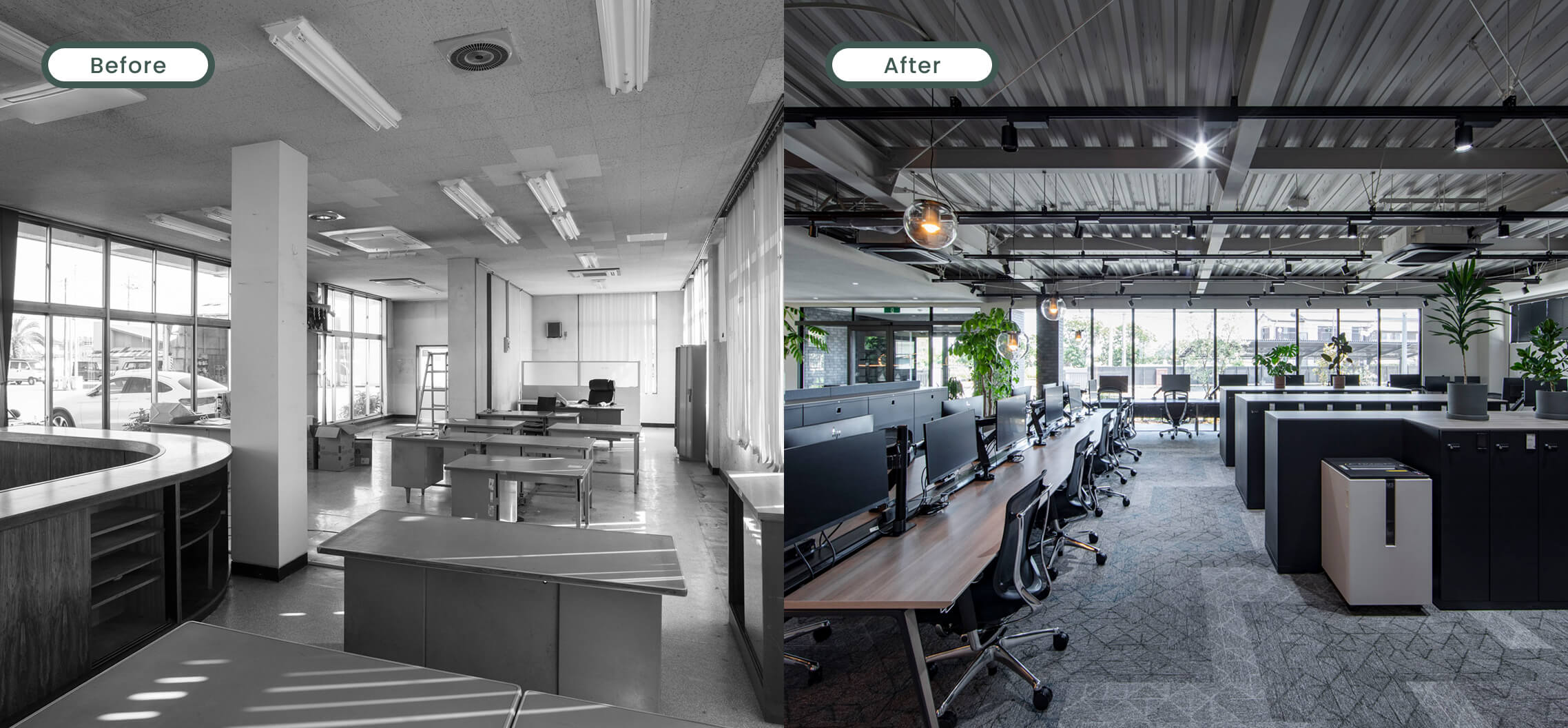 新築と比べてコスト削減になることはもちろん、経営課題に踏み込んだリノベーション提案でビジネスそのものの成長も応援します。