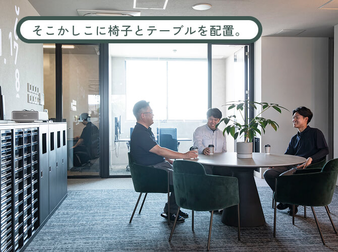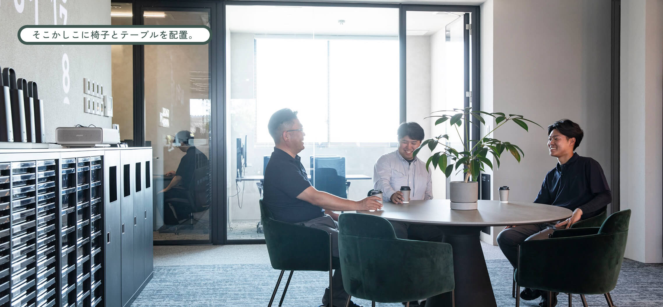 大切なのはレイアウトをただ刷新することではなく、企業が目指す働きかたを実現すること。成島建設では、建物をかたちにするだけでなく、その空間を有効活用していただくためのルールづくりからともに考え、運用方法までをサポートします。