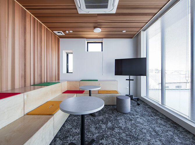 部内で会議をする機会が多いので、用途に合わせて使える会議室が複数できたことが良かったなと感じています。とくに気に入っているのは、最大50人まで収容可能な大会議室です。以前は紙の資料を全員に配布していたのですが、いまはプロジェクターが使えるのでPCをつなぐだけで情報共有できます。会議の準備にかかっていた時間や手間が大幅に削減されました。