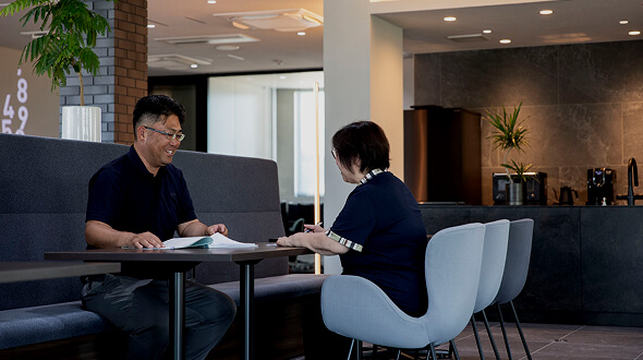 勤続20年以上になりますが、フリーアドレス化は建設の仕事にとても合っているなという新しい気づきがありました。まずデスクが自由に使えるので大きな図面も広げやすい。そして翌日は別の人が使う席になるという意識もあって、メリハリをつけて仕事を進められるようになり残業が減りました。会社がより時代に合った働きかたに変わってきている実感があります。