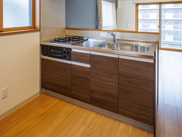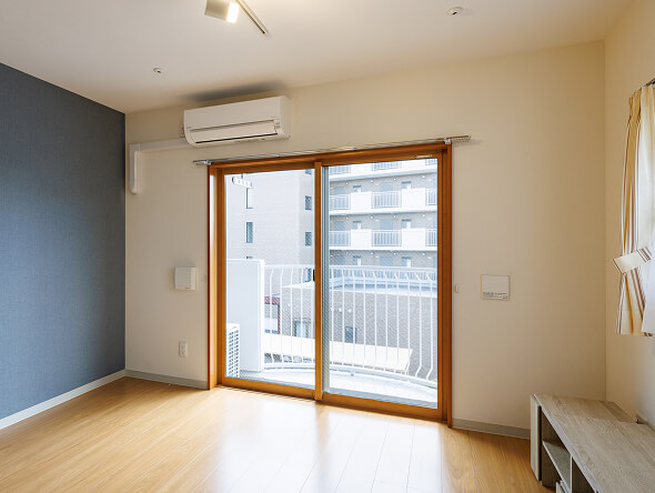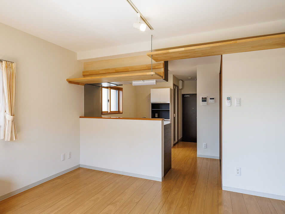 築40年で全体的に設備が古く、職員の利用率が低いというお悩みを抱えていた同施設。もともと単身者向けで狭く使いにくい間取りであったため、2つの部屋の間の壁を取り払い1部屋に大きく改装。給排水・電気設備も刷新し、ファミリーにも快適な明るく広々とした社宅に生まれ変わりました。